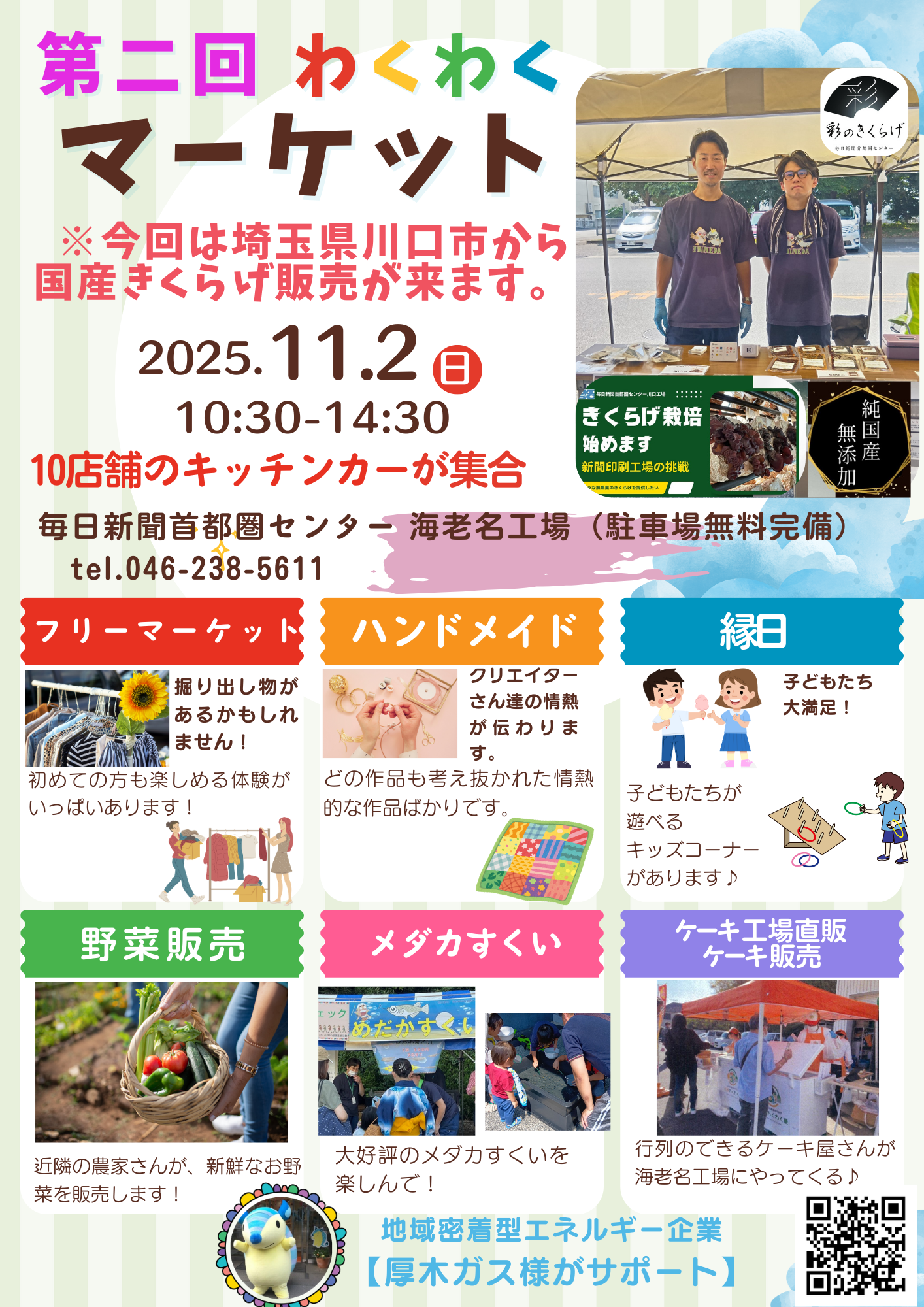 今年春に開催いたしました「わくわくマーケット」が大変好評を賜りましたことを受けて、 「第二回わくわくマーケット」を開催する運びとなりました。